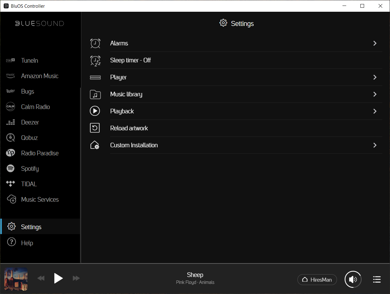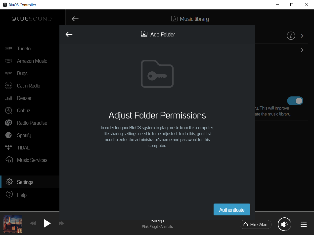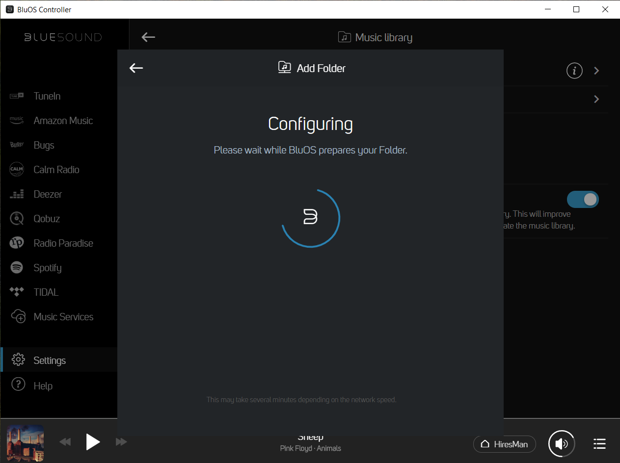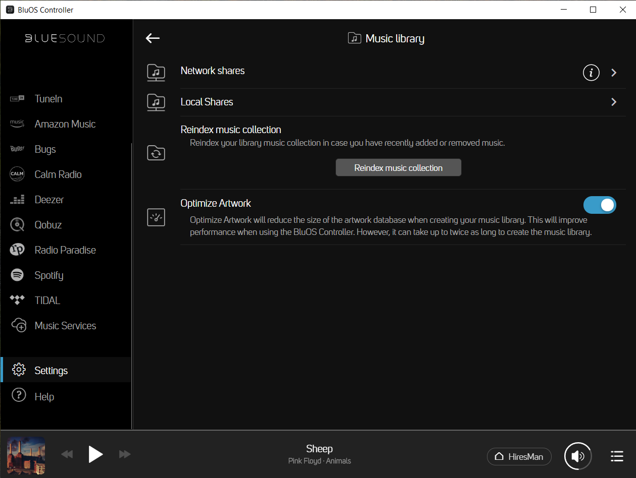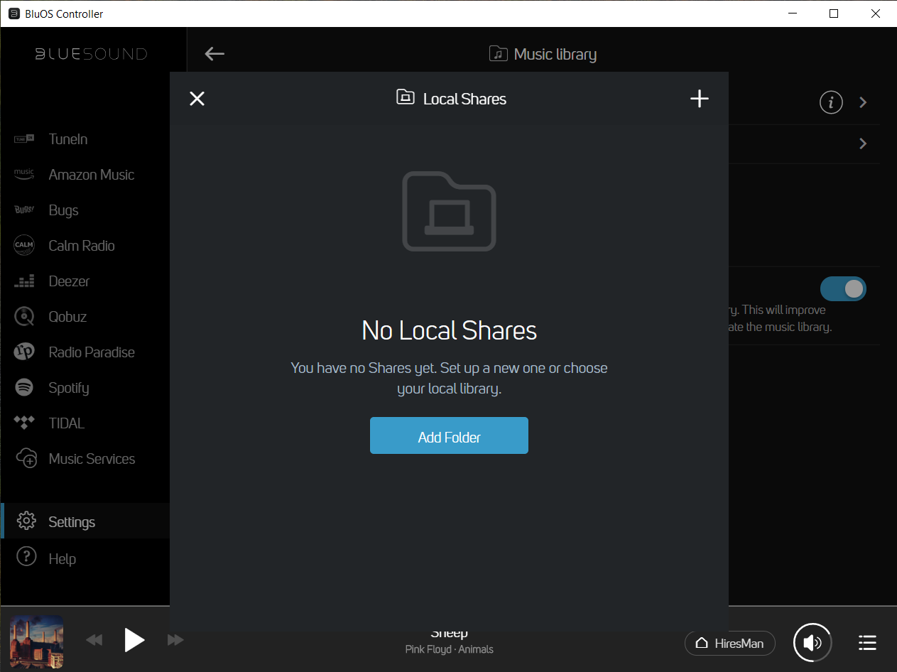 แต่เมื่อเรากลับมาเปิด โปรแกรม BluOS อีกครั้ง เราก็ยังไม่เห็น Music Library ในหน้าหลัก แทบซ้ายมือ ของตัวโปรแกรม เราจึงต้องไปทำการรีอินเด็กซ์เพลงในขั้นตอนต่อไป